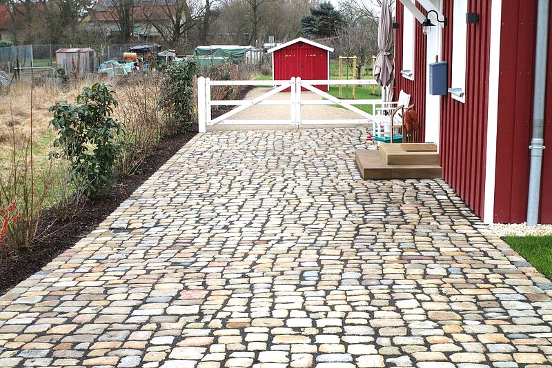 Plasterstein ist nicht gleich Pflasterstein. Bevor wir beginnen mit unseren Arbeiten, beraten wir Sie über die vielfältigen Möglichkeiten, wie Sie mit Natursteinpflaster, Betonpflaster oder einer Kombination aus beiden, eine individuelle Lösung schaffen können. Neben den gestalterischen Möglichkeiten ist auch die spätere Nutzung der Fläche von großer Bedeutung. Je nach Belastung der Fläche muss die Stärke der Tragschicht und des Pflasters gewählt werden.